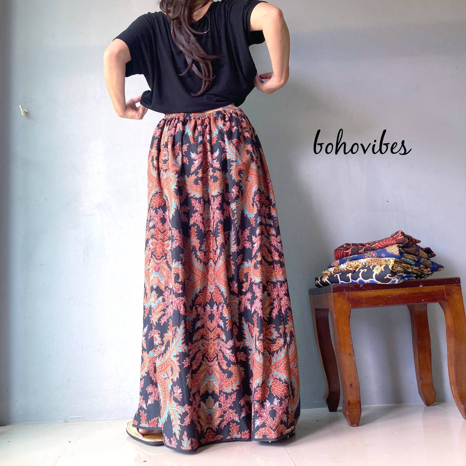 タイ女性達が愛用するパートゥンと呼ばれる華やかな生地をたっぷり使ってシンプルなスカートにしました。
