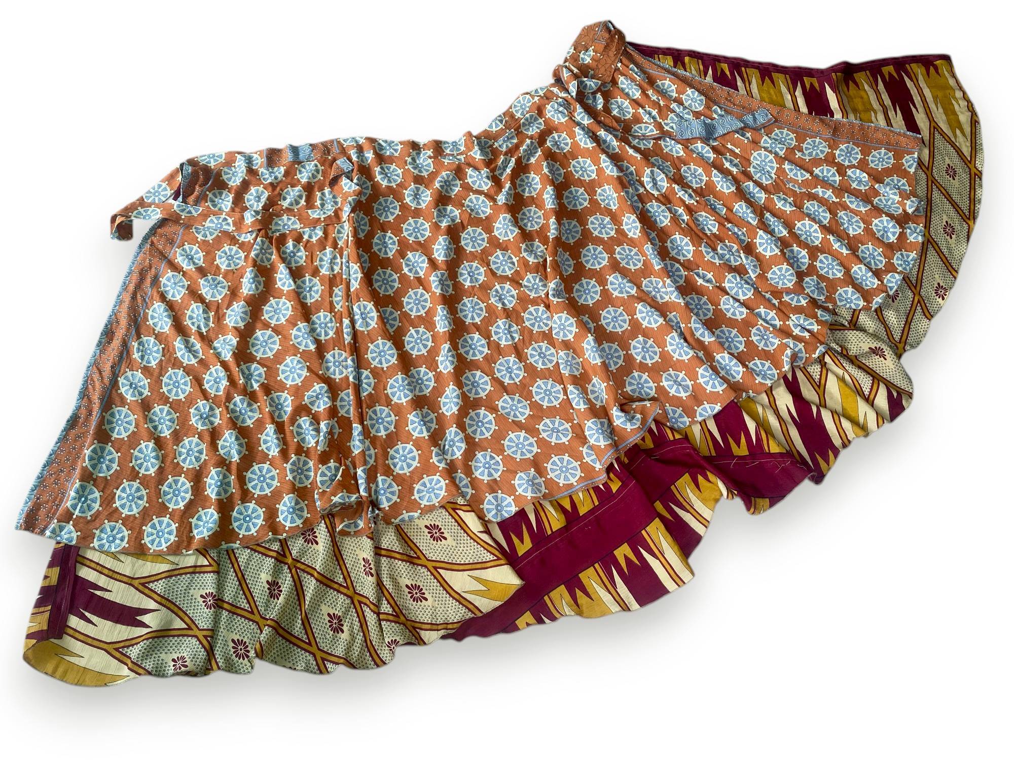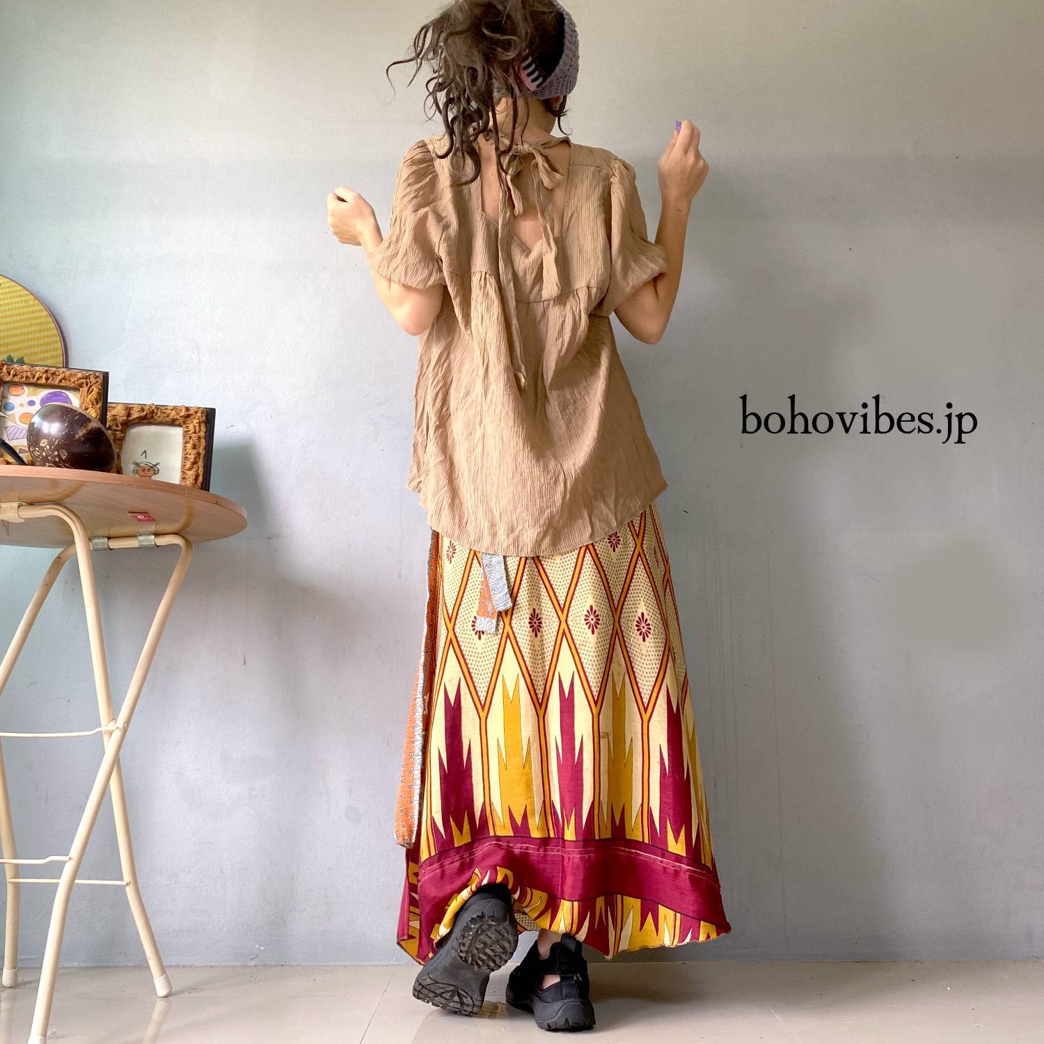 美しいインドの伝統が息づく、オールドサリーをリメイクした巻きスカートが登場しました!一枚ずつセレクトされたサリーから作られたこのスカートは、実に個性的で、他にはない唯一無二のアイテムです。