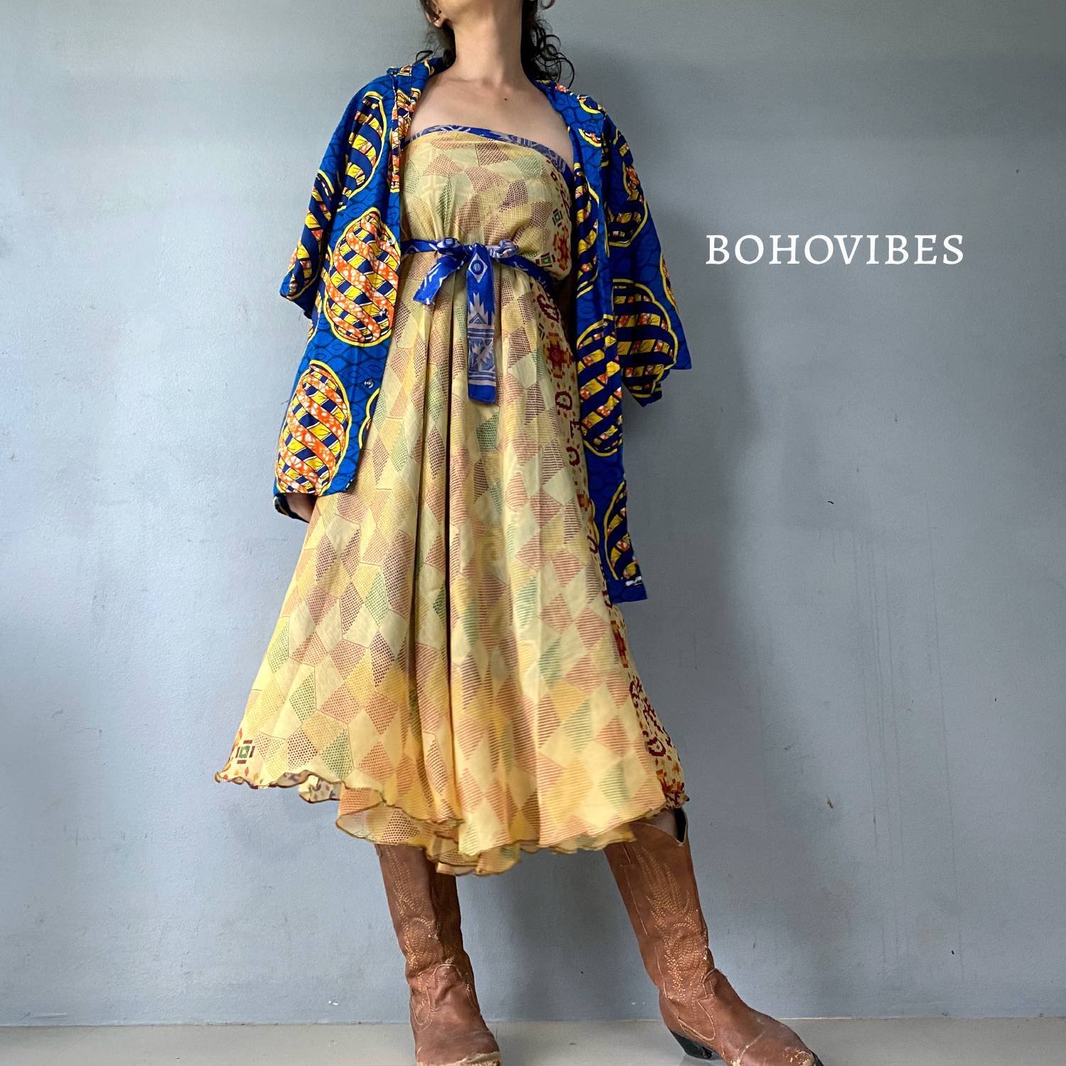 この巻きスカートは、サリーの魅力を活かしつつ、簡単に着脱ができるデザイン。巻き方次第ではワンピースやジレとしても活用できるので、コーディネートの幅が広がります。様々なシーンで活躍し、あなたのスタイルを引き立てます。