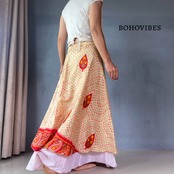 この巻きスカートは、サリーの魅力を活かしつつ、簡単に着脱ができるデザイン。巻き方次第ではワンピースやジレとしても活用できるので、コーディネートの幅が広がります。様々なシーンで活躍し、あなたのスタイルを引き立てます。