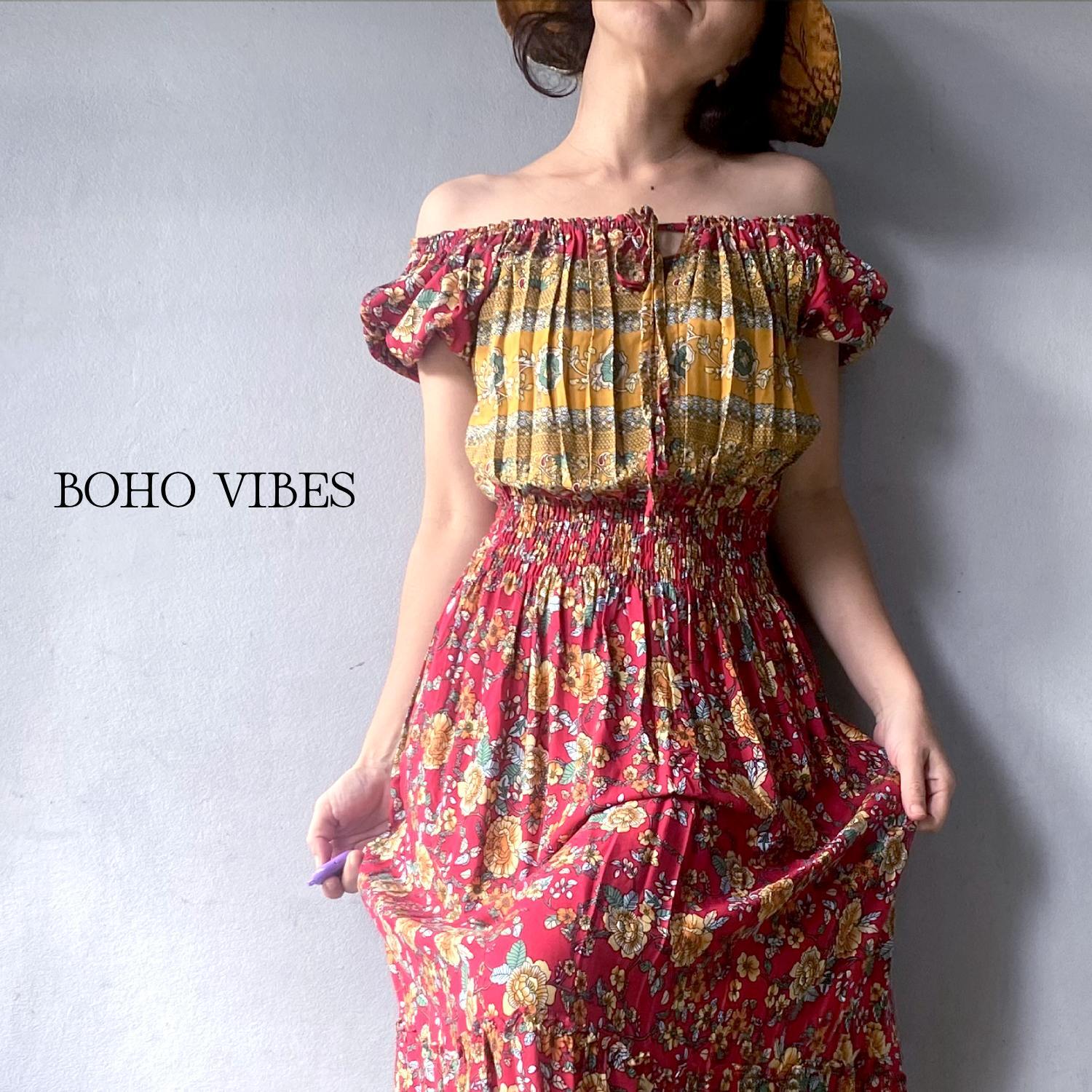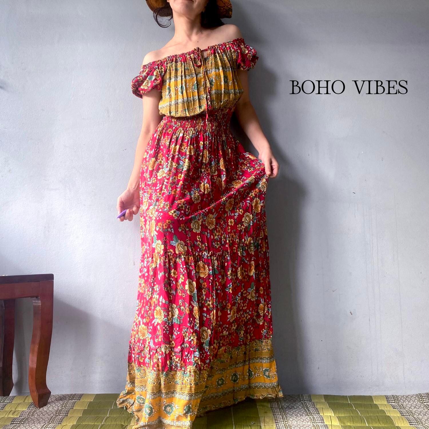 鮮やかな色と小花柄が楽しめる、100%レーヨンのボヘミアンワンピースが登場しました!