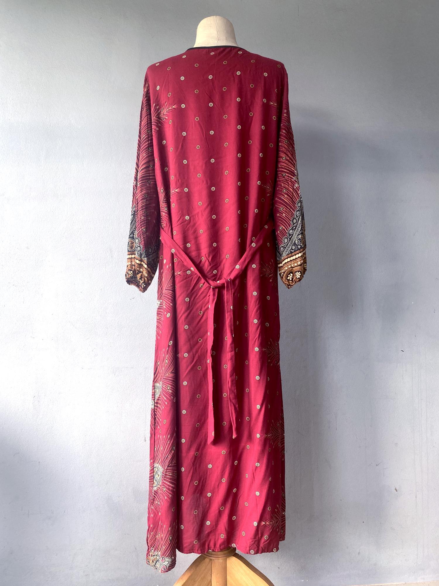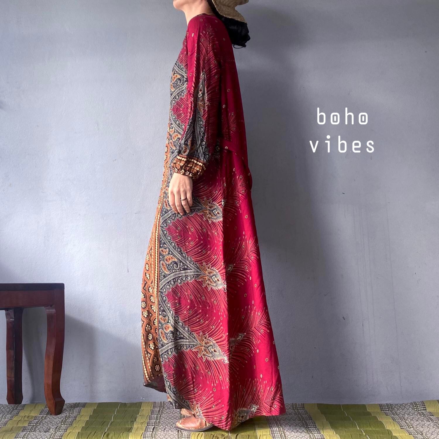 ***フェザーエスニック柄 レーヨンコットン 長袖ワンピース***