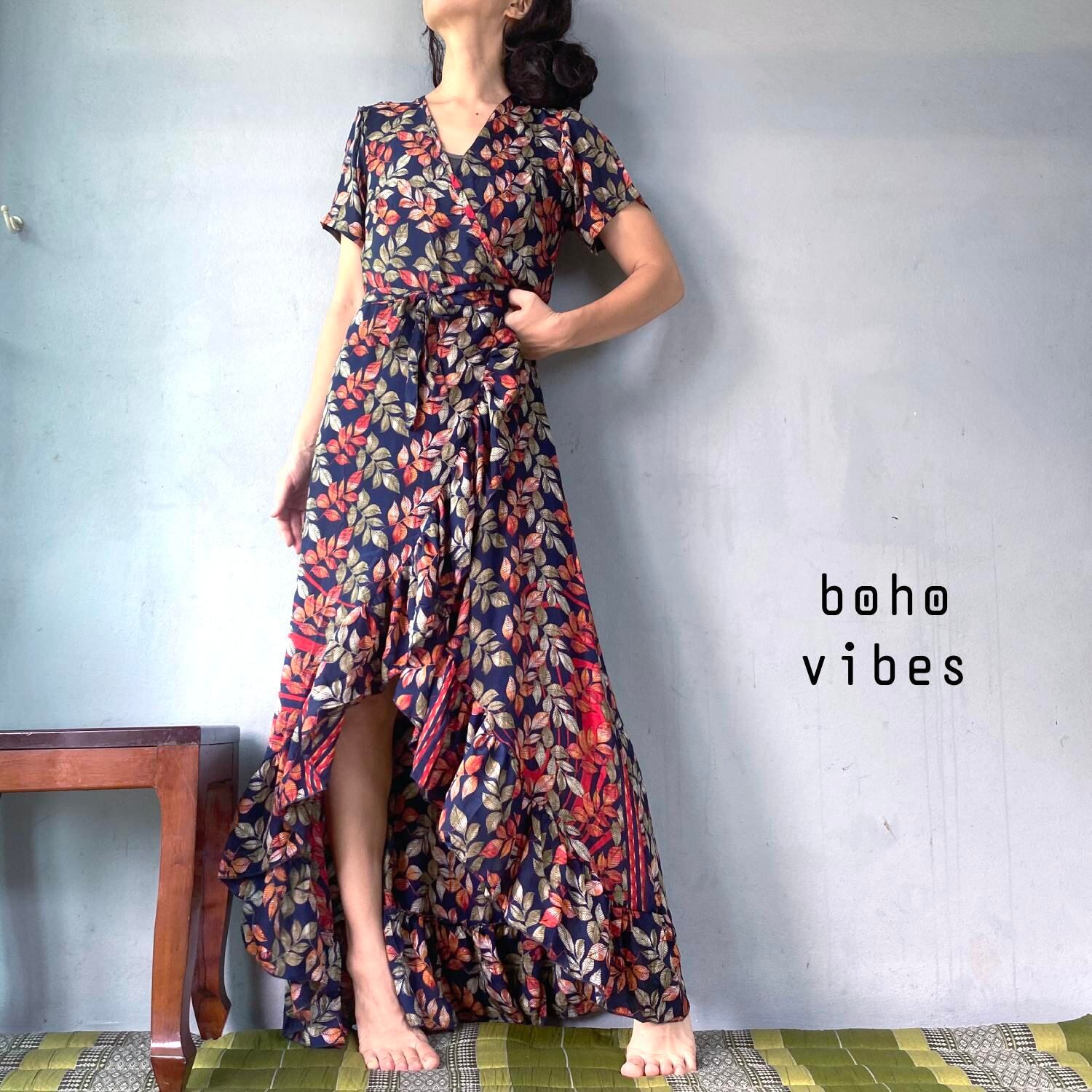 インドサリー生地の魅力が詰まった、カシュクールkimonoワンピース✨