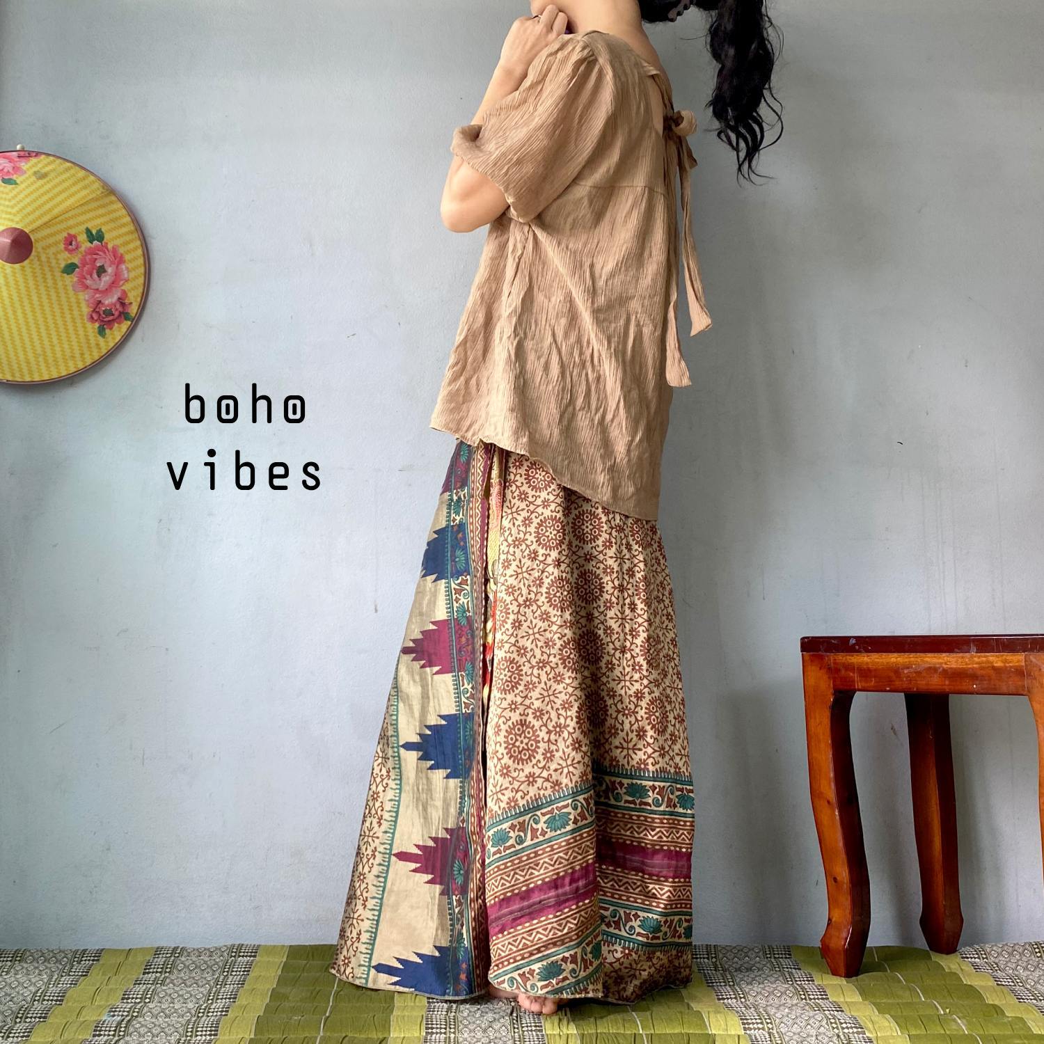美しいインドの伝統が息づく、オールドサリーをリメイクした巻きスカートが登場しました!一枚ずつセレクトされたサリーから作られたこのスカートは、実に個性的で、他にはない唯一無二のアイテムです。