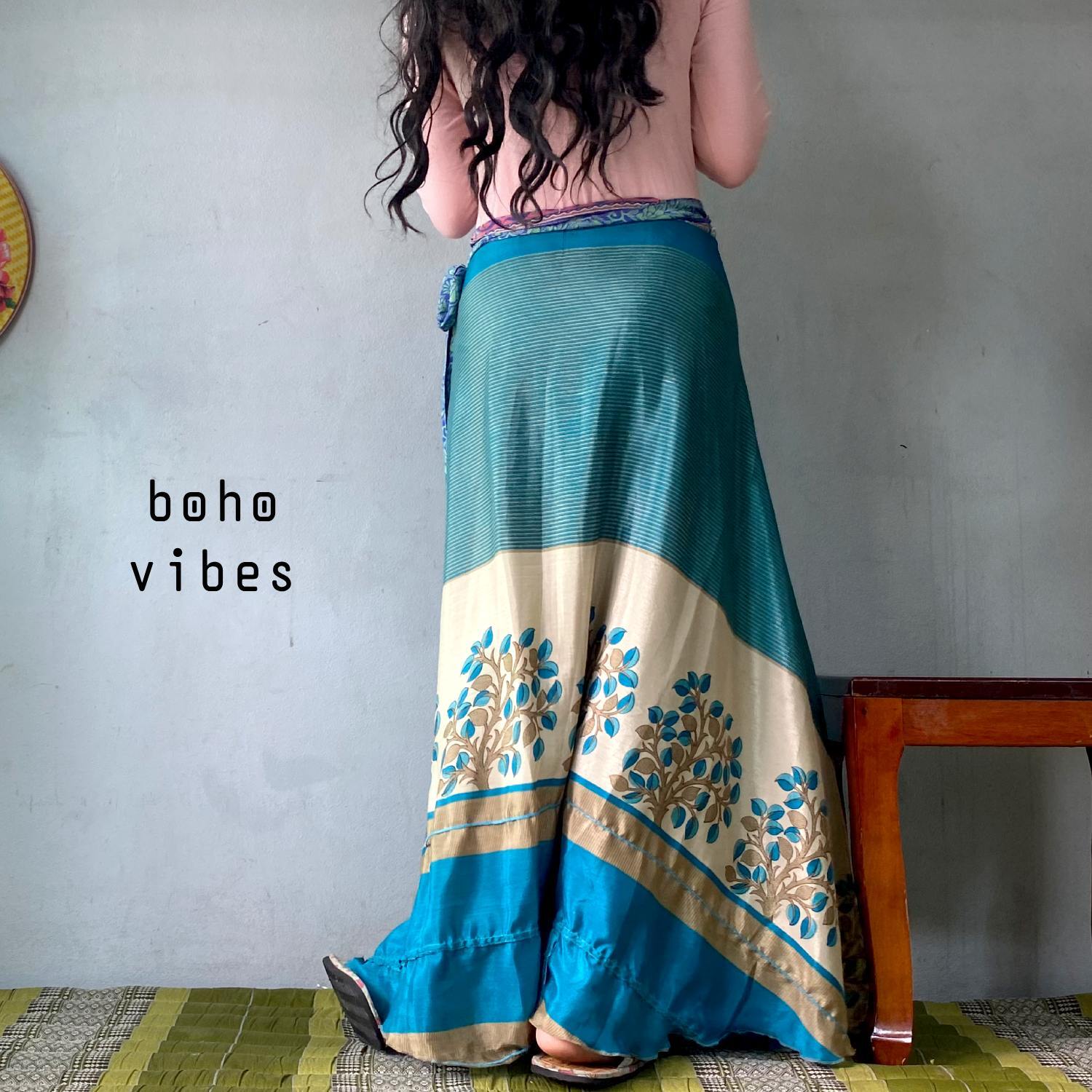 【巻き方次第で着こなしイロイロ】インドサリー生地リメイク 巻きスカート ロング丈 36