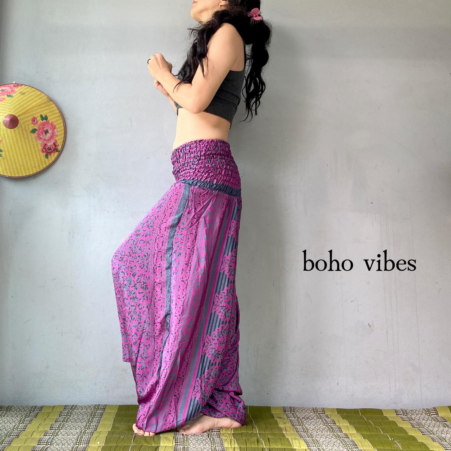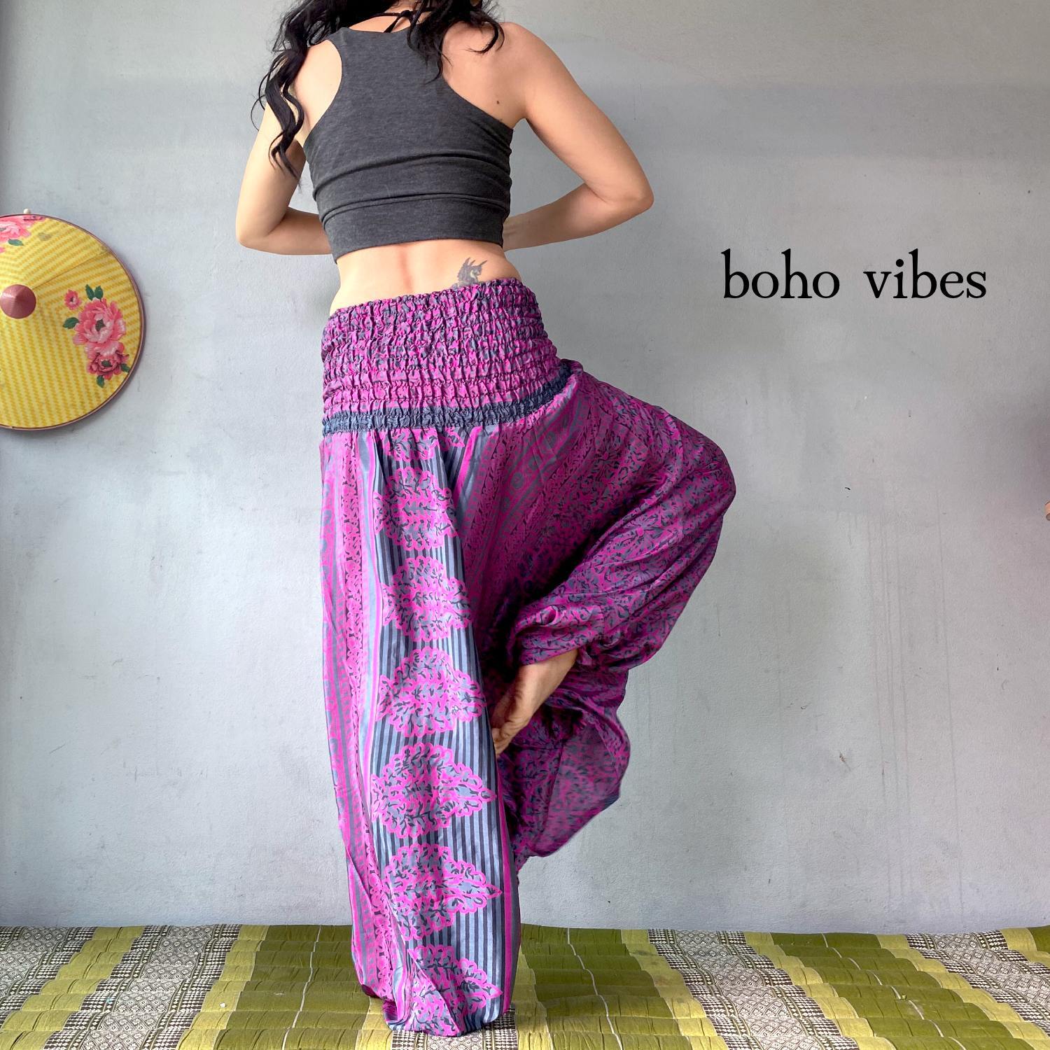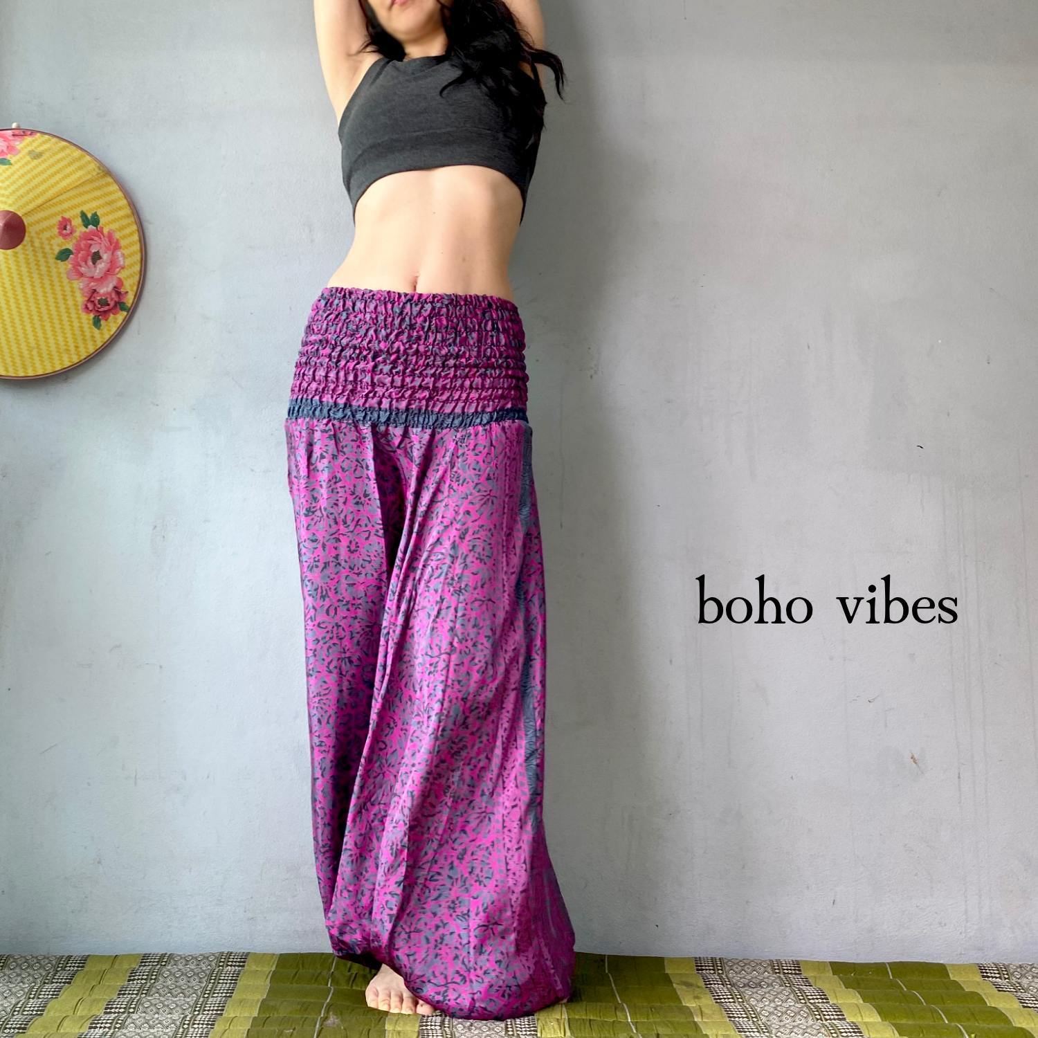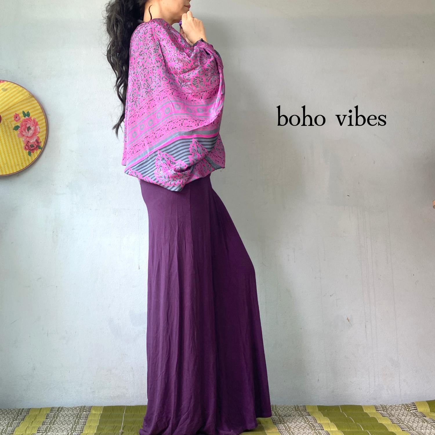 インドサリーをリメイクしたシルク素材のアラジンパンツです。
