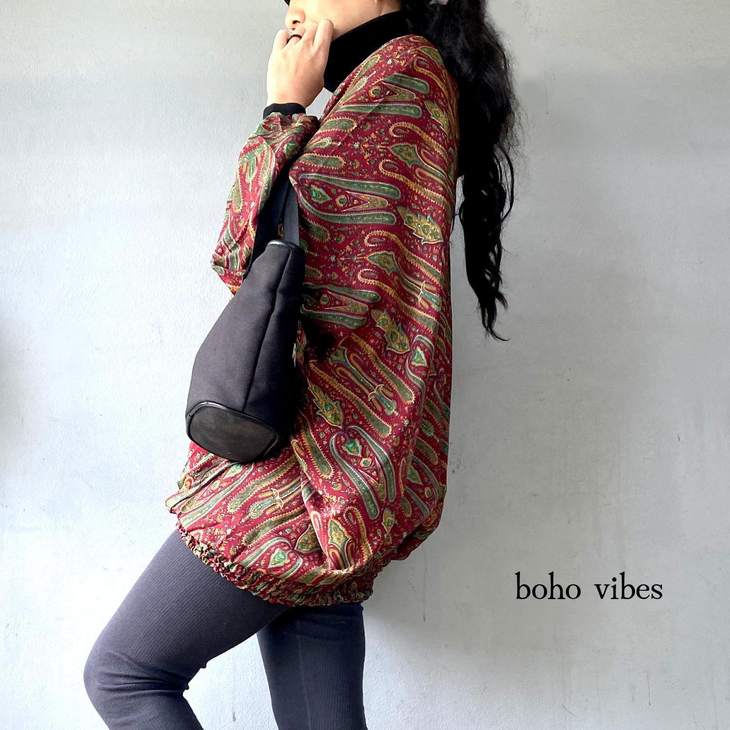 このアラジンパンツは、まるで夢の中にいるような気分で、オリエンタルな魅力を感じさせます。