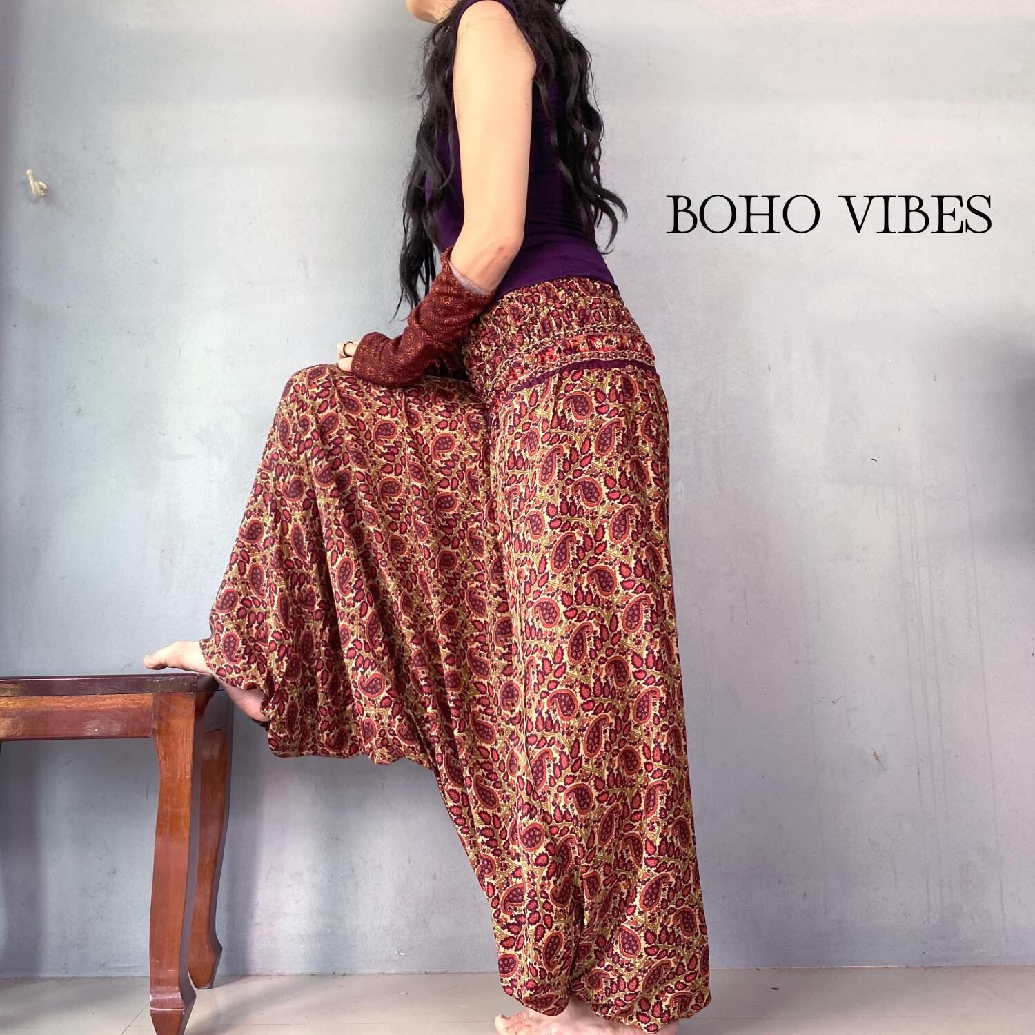 このアラジンパンツは、まるで夢の中にいるような気分で、オリエンタルな魅力を感じさせます。