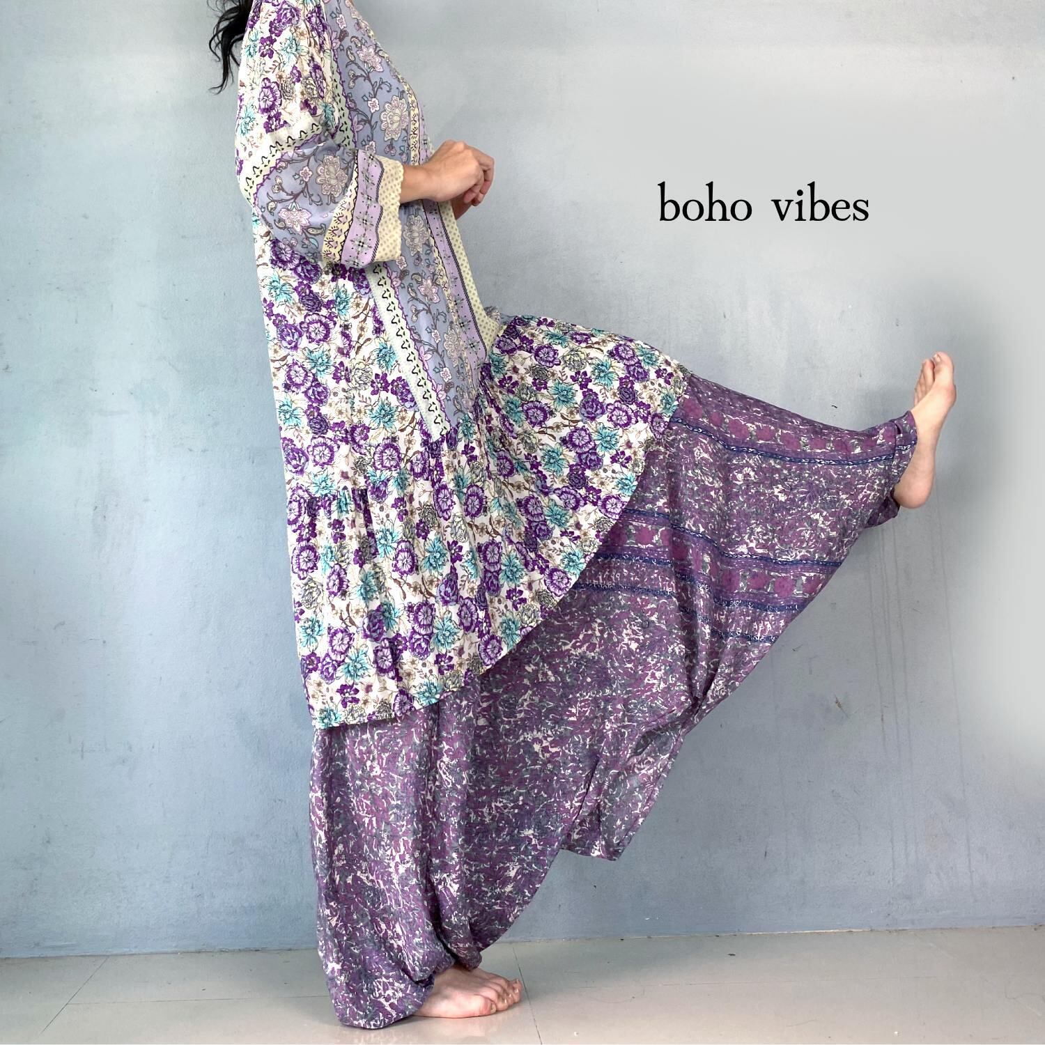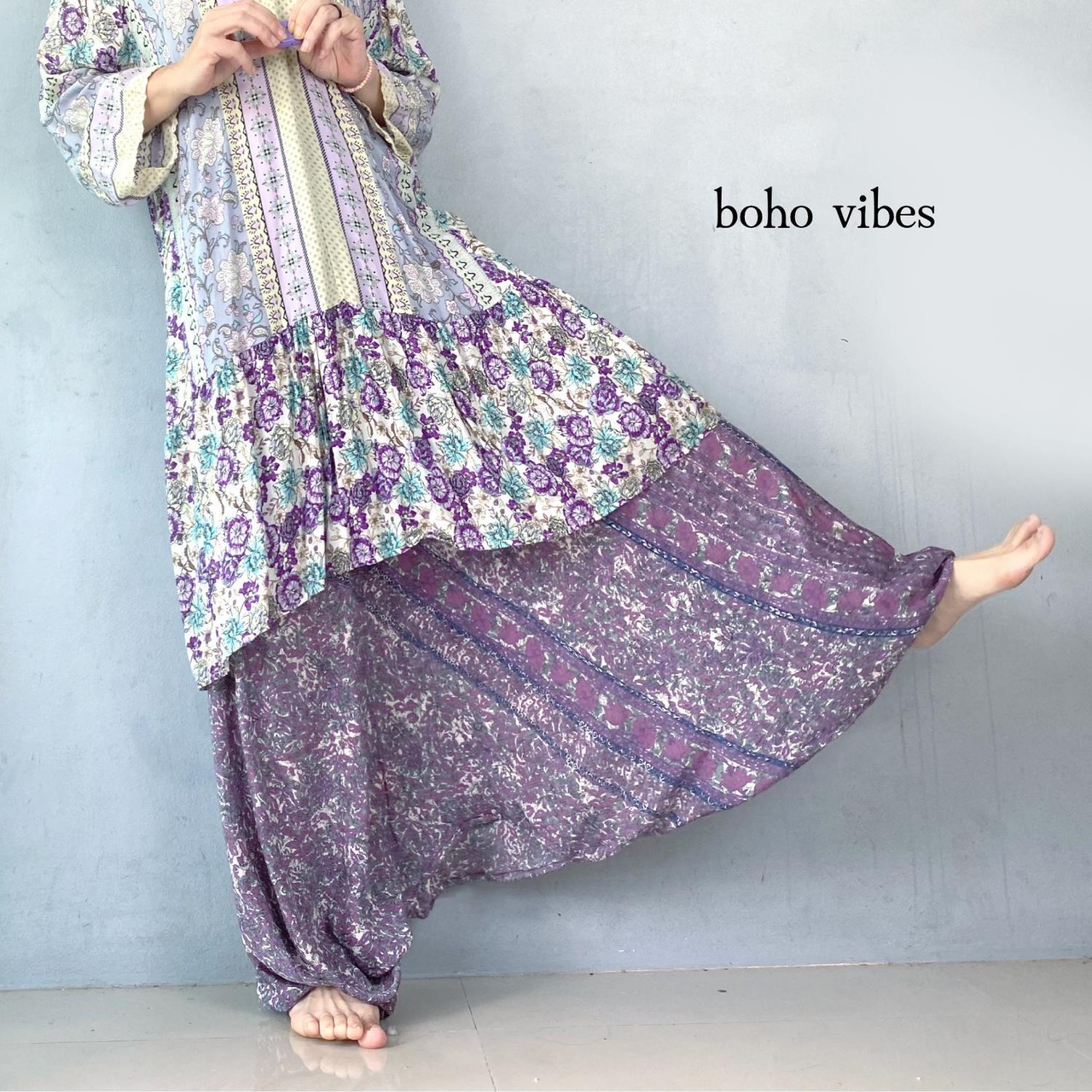 このアラジンパンツは、まるで夢の中にいるような気分で、オリエンタルな魅力を感じさせます。