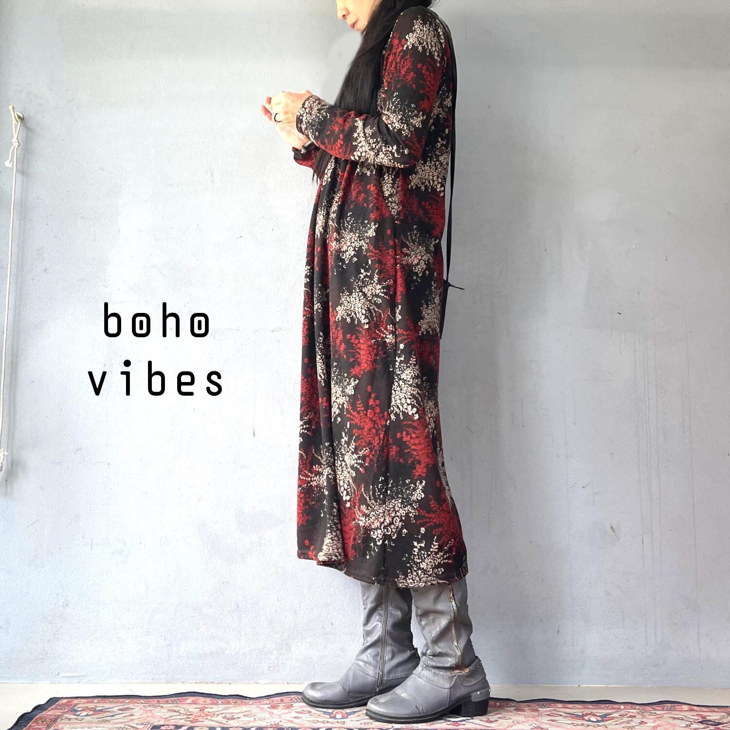 \3色の花柄プリントとボヘミアンの魅力が融合した華やかなワンピース/