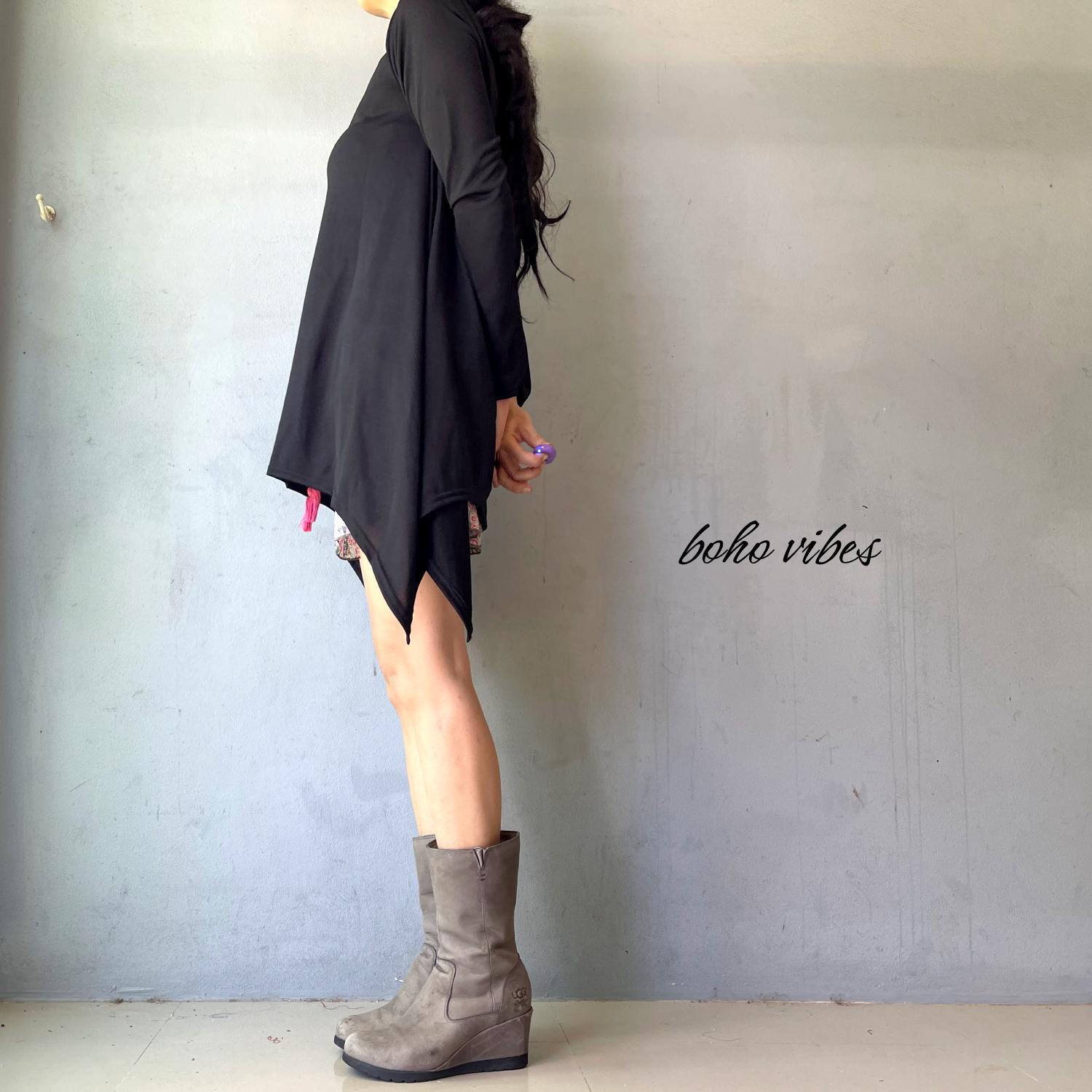 両サイドが長く、ゆったりとしたシルエットが特徴のこのカットソーは、体型カバー効果もバッチリ。気になる部分を優しく包み込み、どんなシーンでも自信を持って着用できる一着です。