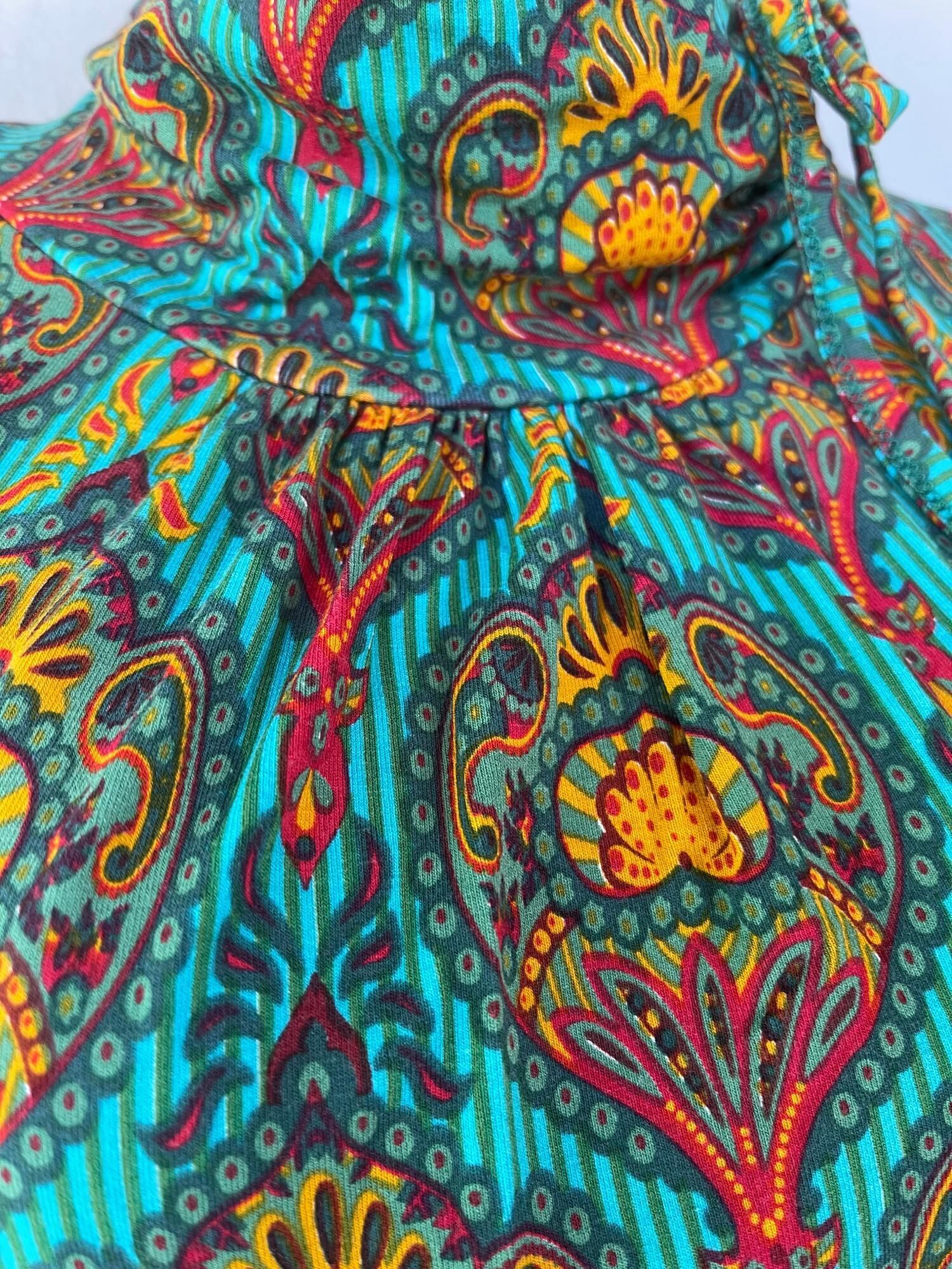 【white/green】モロッカン/アラベスク調 ネックリボン ストレッチトップス