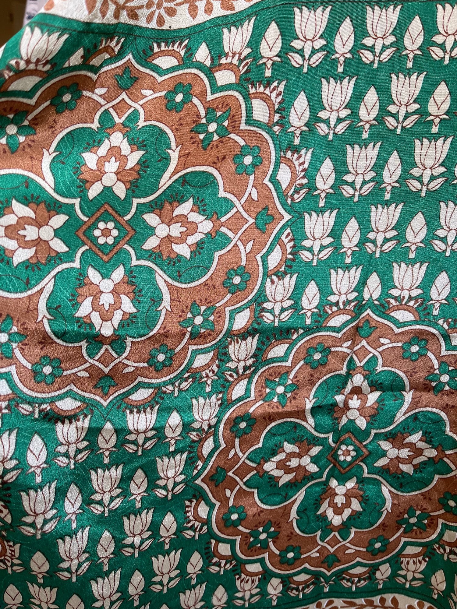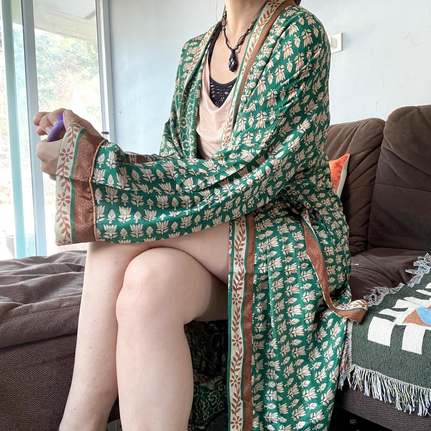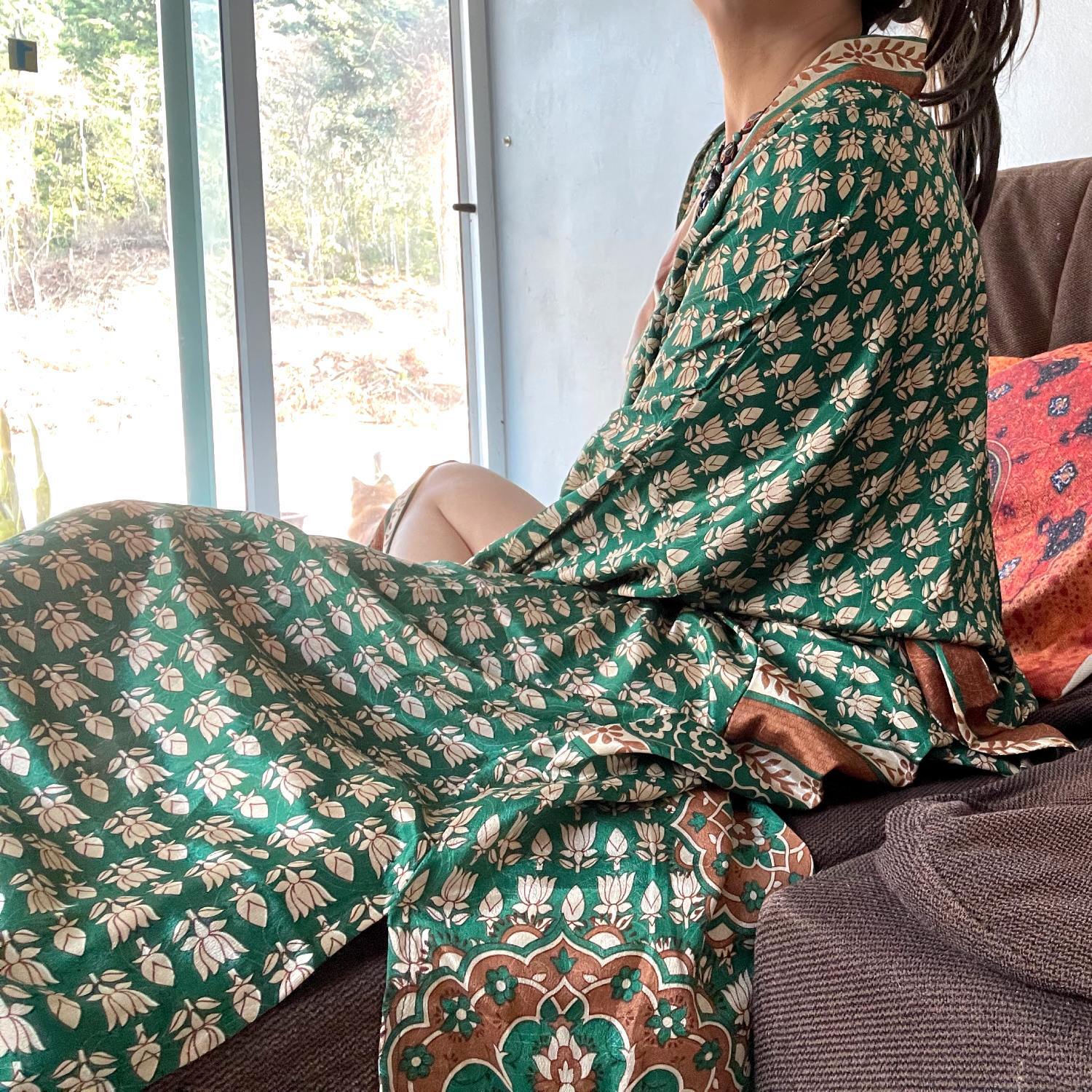 【green arabesque】インドサリー生地リメイク◎ボヘミアンロング羽織り 着物ローブ カフタン