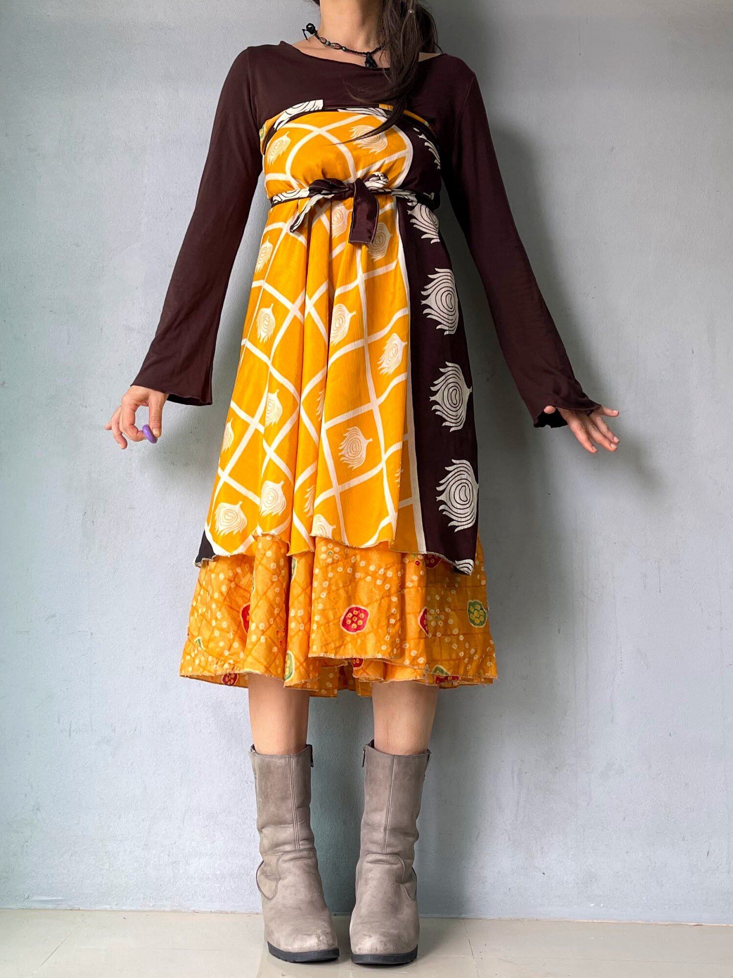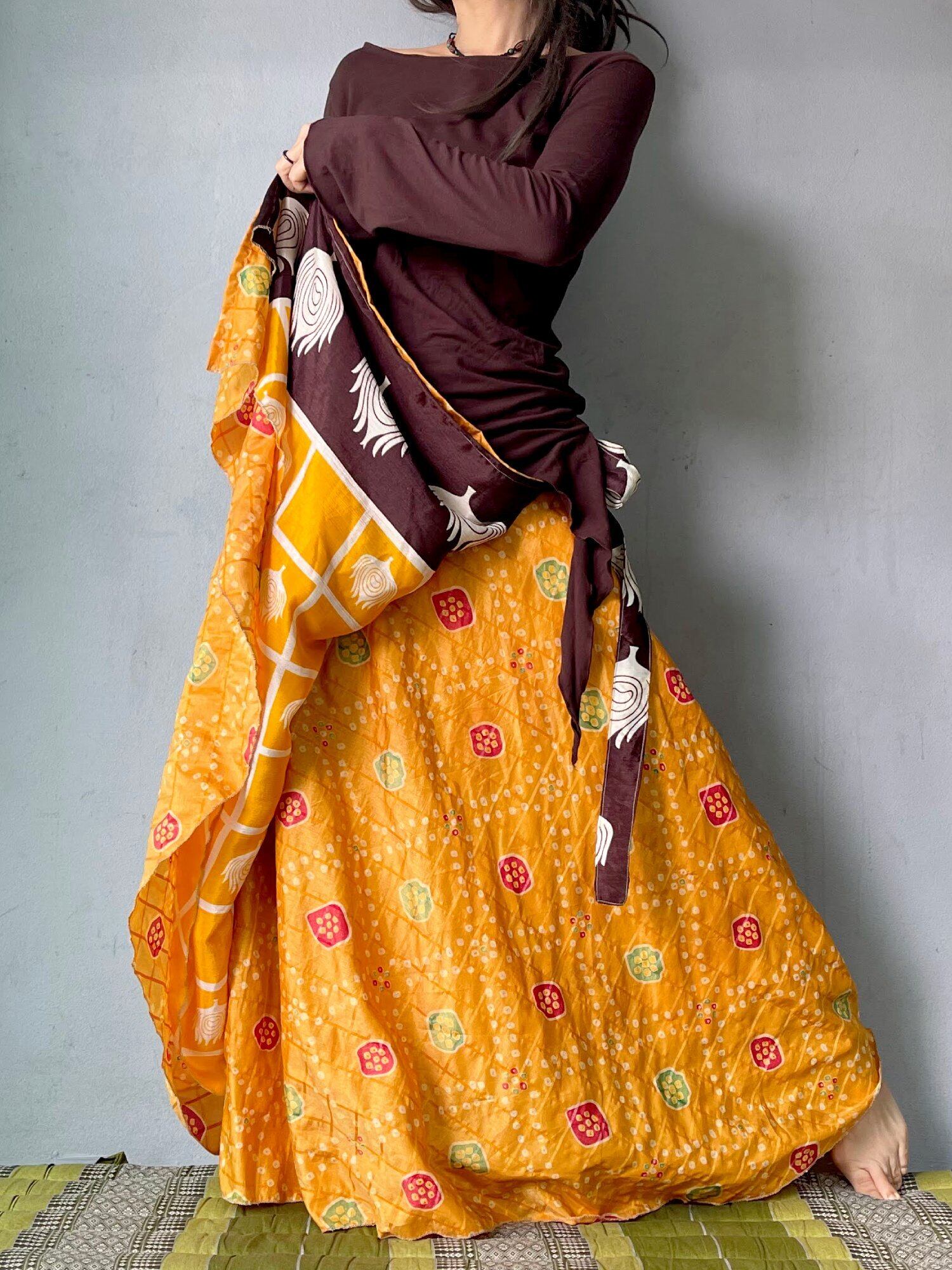 【巻き方次第で着こなしイロイロ】インドサリー生地リメイク 巻きスカート ロング丈 104