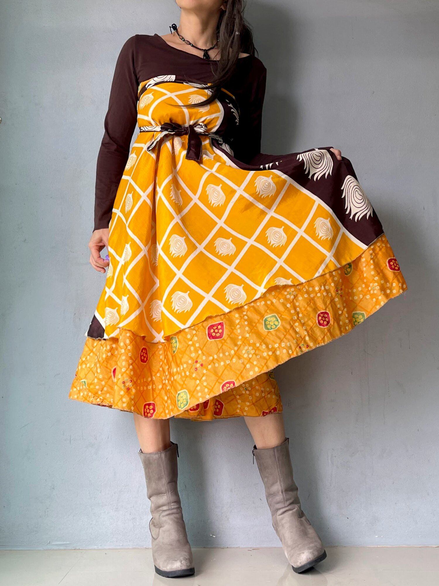 美しいインドの伝統が息づく、オールドサリーをリメイクした巻きスカートが登場しました!一枚ずつセレクトされたサリーから作られたこのスカートは、実に個性的で、他にはない唯一無二のアイテムです。