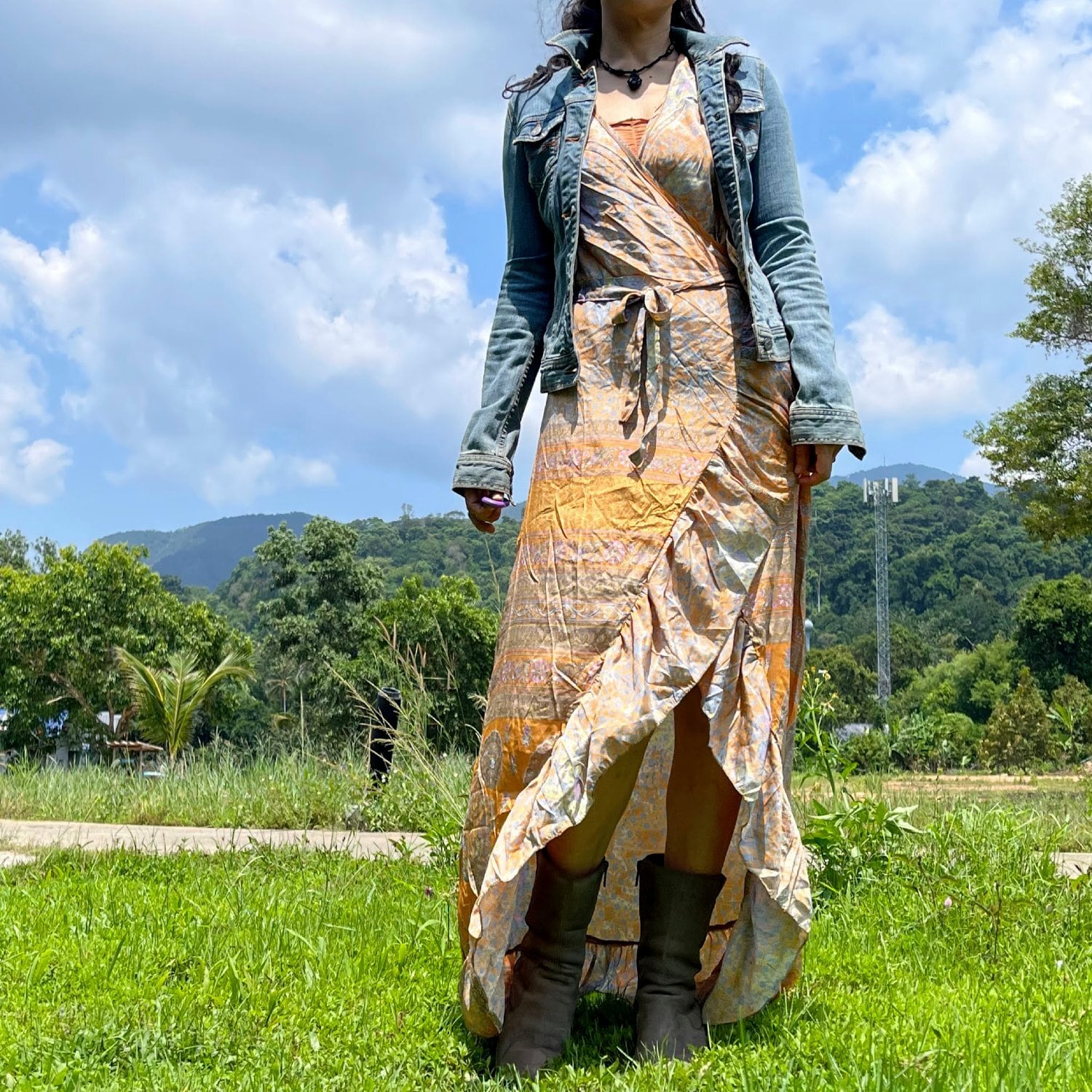 *インドサリー生地リメイク◎カシュクールkimonoワンピース*