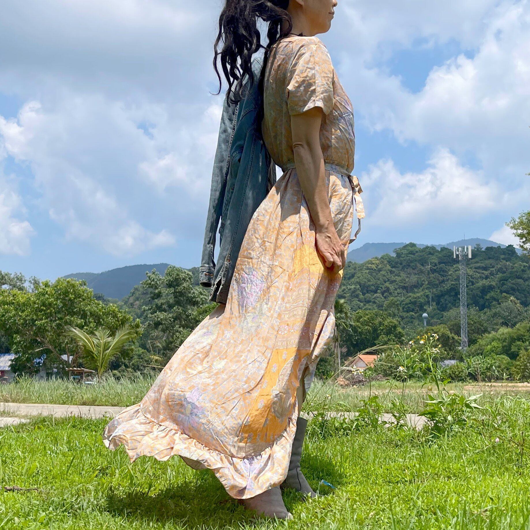 インドサリー生地の魅力が詰まった、カシュクールkimonoワンピース✨