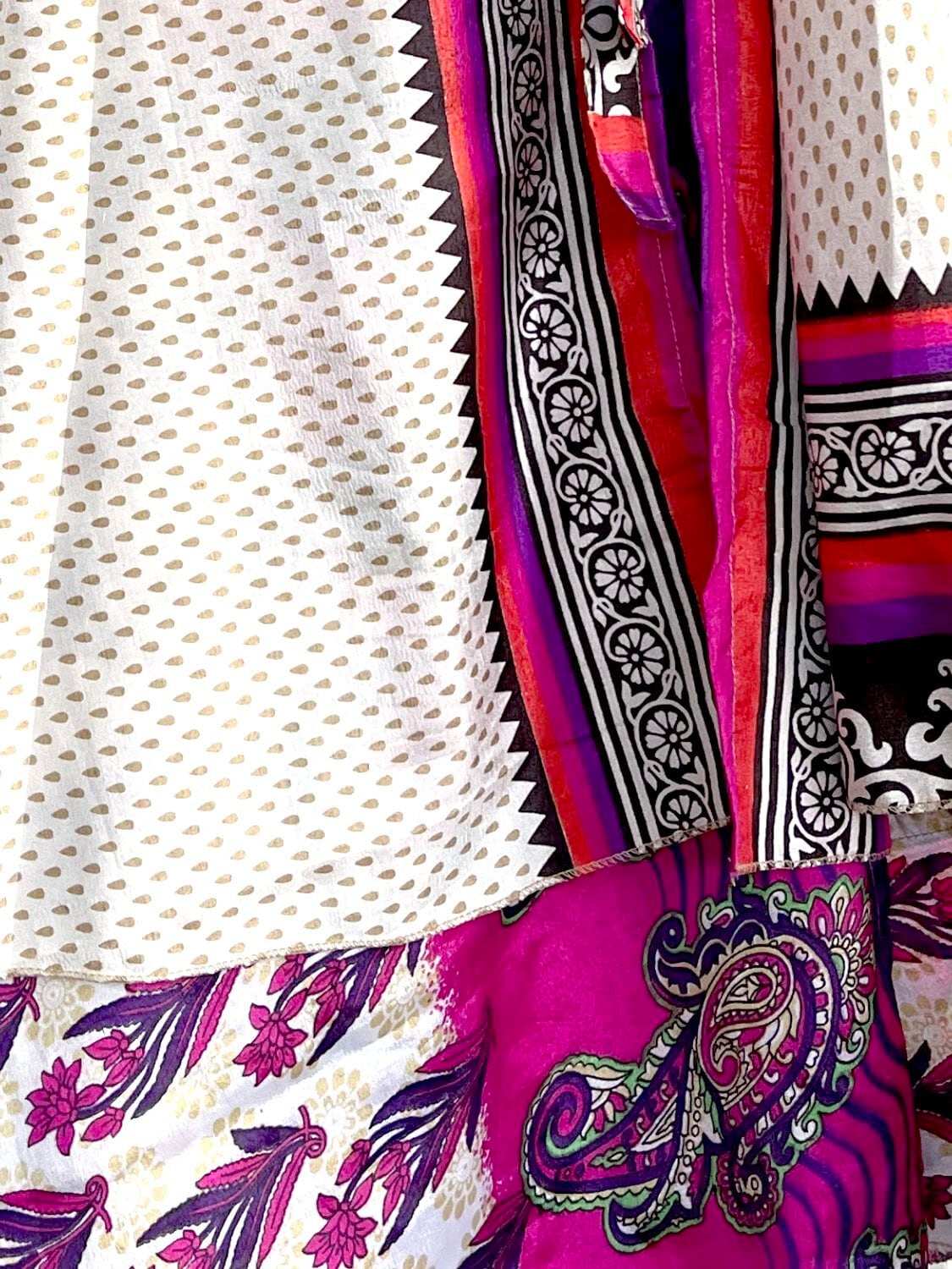 美しいインドの伝統が息づく、オールドサリーをリメイクした巻きスカートが登場しました!一枚ずつセレクトされたサリーから作られたこのスカートは、実に個性的で、他にはない唯一無二のアイテムです。