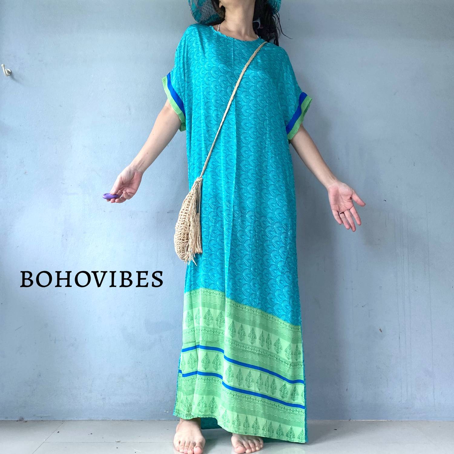 \\ぜひこの機会に、一点もののインドサリー生地リメイク シンプルワンピースで夏のおしゃれを楽しんでください!//
