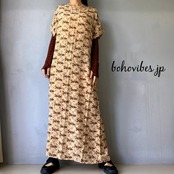 *一点ものインドサリー生地リメイク シンプルワンピース*