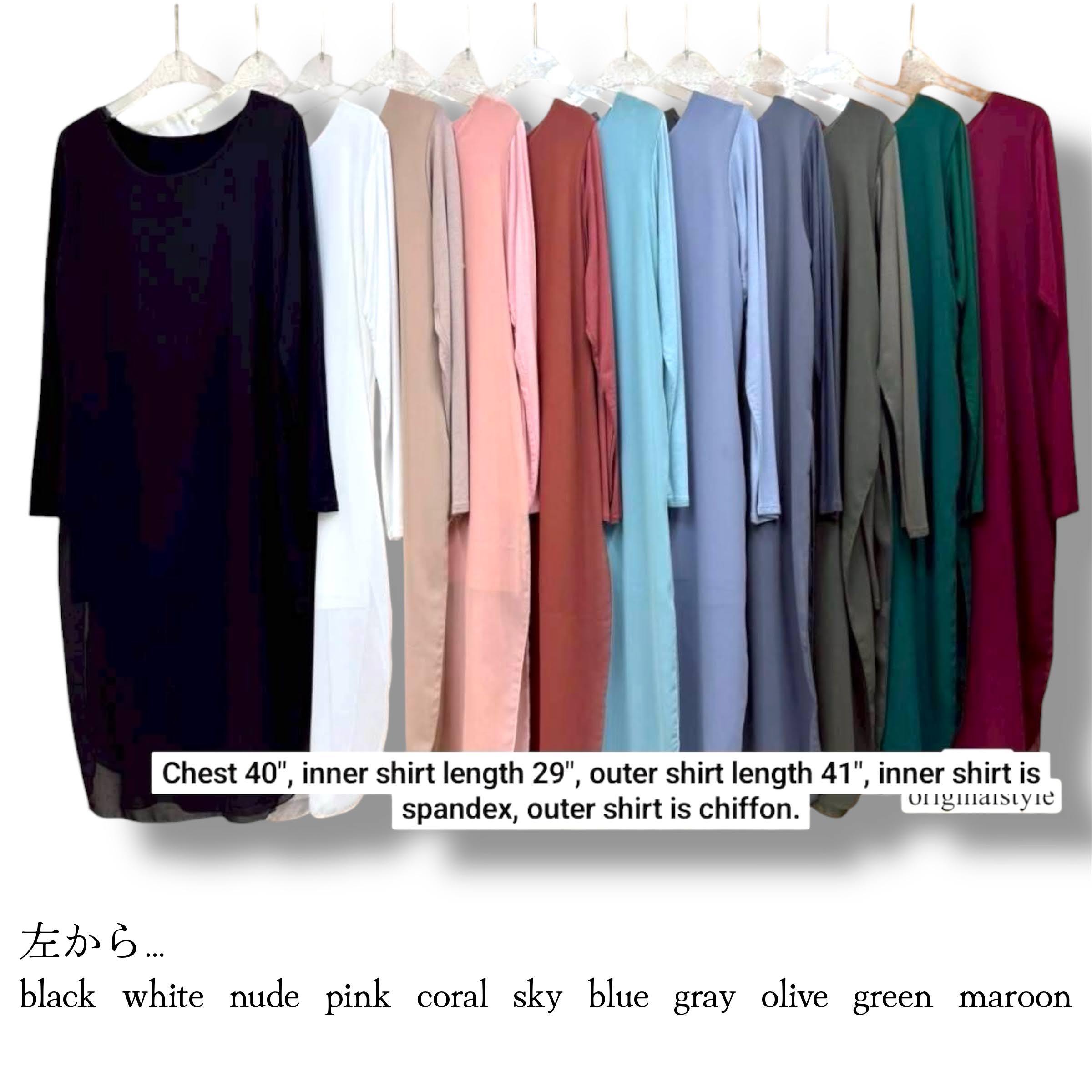 *シフォン素材x SPANDEX アオザイ風ワンピース*