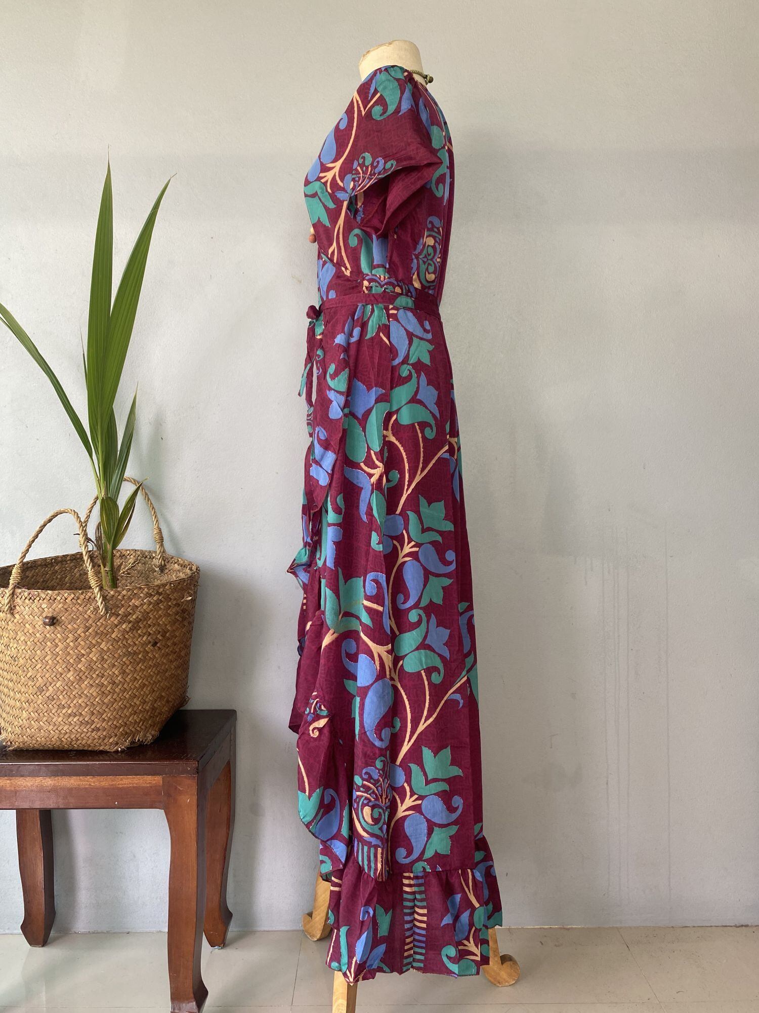 インドサリー生地の魅力が詰まった、カシュクールkimonoワンピース✨